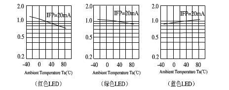 LED显示技术中,每个像素都由红绿蓝三个LED管芯组成,R(红)、G(绿)、B(蓝)三色LED管芯亮度与温度的关系如下: